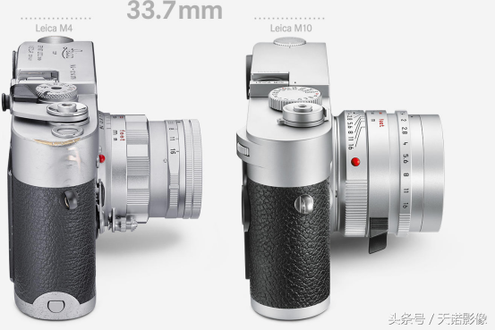新产品徕卡M10的机身同比上一代产品厚度小了一些,和徕卡的胶片相机尺寸较为接近,下面我们看下胶片M4与M10对比图。