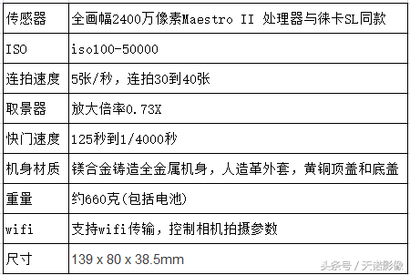 上面的图片可以看到这款机器的是MaestroII处理器与徕卡SL同款,2GB/16张连续拍摄的照片,全幅24MP(5976x3992Pixel)像素分辨率。