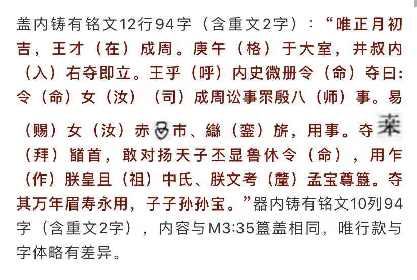 ▲北白鹅墓地出土青铜夺簋盖铭文(M3:35)