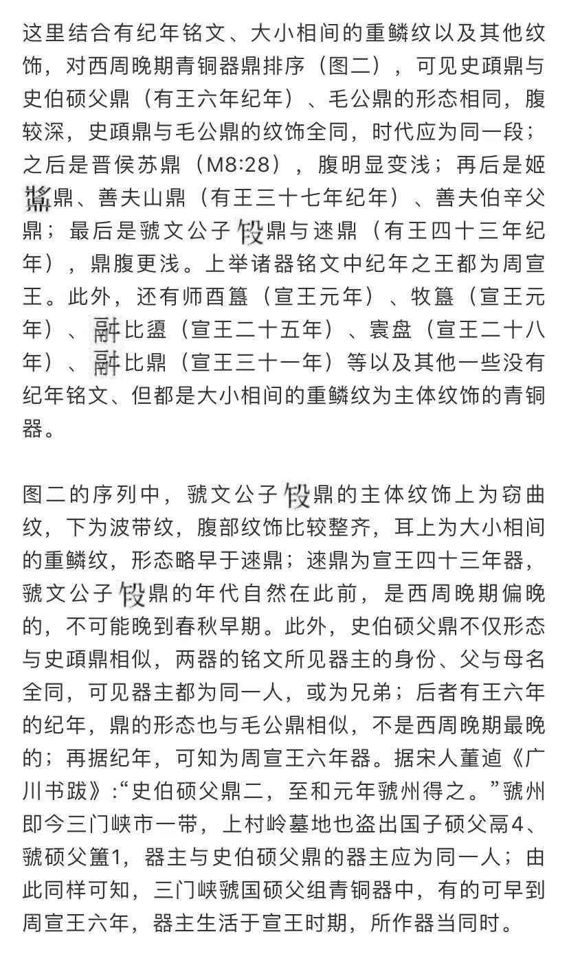 但也有观点认为上村岭M2001等的时代晚到春秋早期,依据除了对西周末年的形势的讨论,还有器物的形态、装饰方面。断代的直接依据应该是年代明确的器物,但这方面由于长期没有标准器,对两周之际器物的断代,研究者的认识多有差异。现在结合北赵晋侯墓地等这样一些墓葬以及出土青铜器的时代和序列相对明确的新材料,细加考索,可对有关器物断代作比较精准的把握。