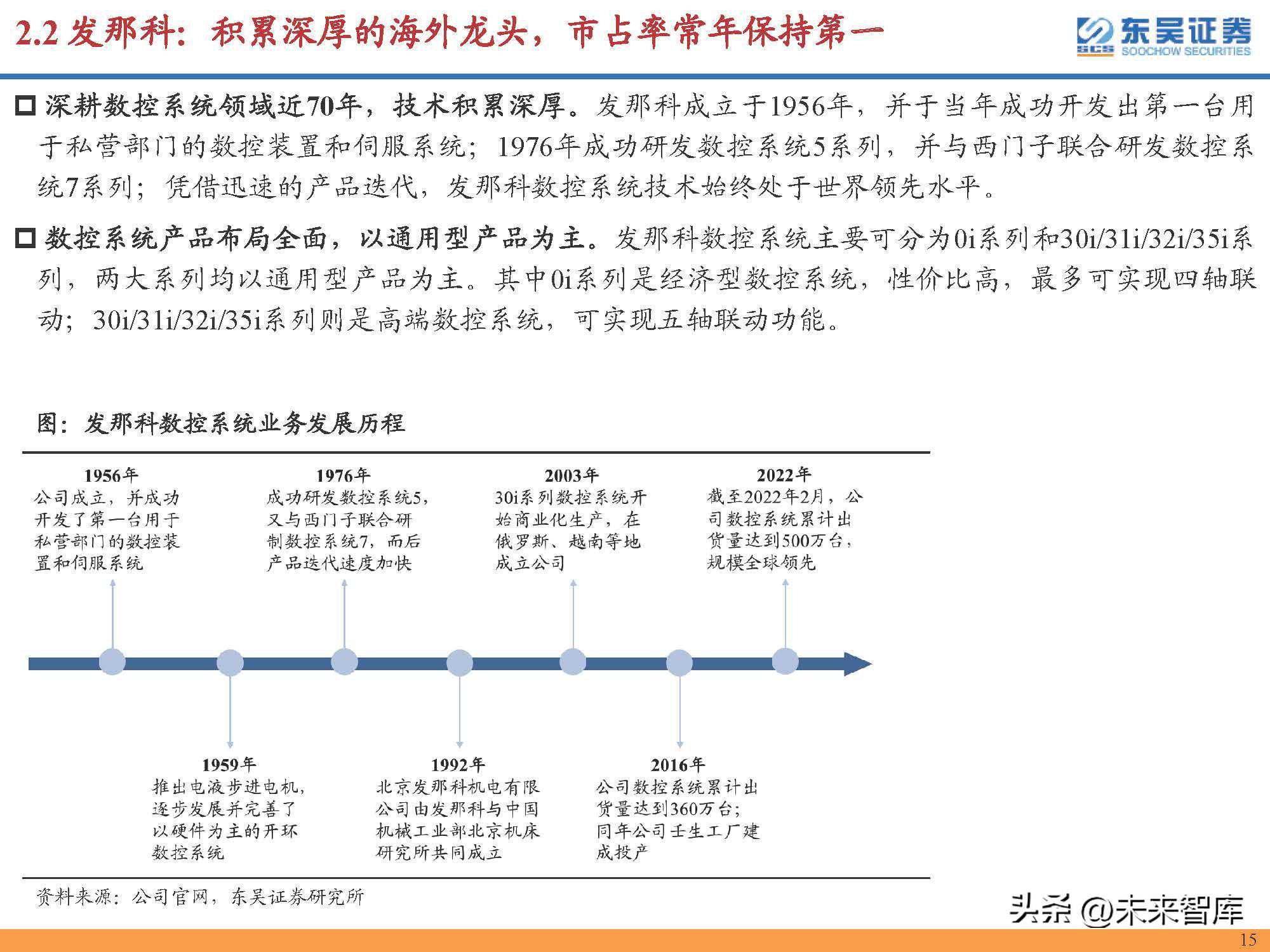 深耕数控系统领域近70年,技术积累深厚。发那科成立于1956年,并于当年成功开发出第一台用于私营部门的数控装置和伺服系统;1976年成功研发数控系统5系列,并与西门子联合研发数控系统7系列;凭借迅速的产品迭代,发那科数控系统技术始终处于世界领先水平。