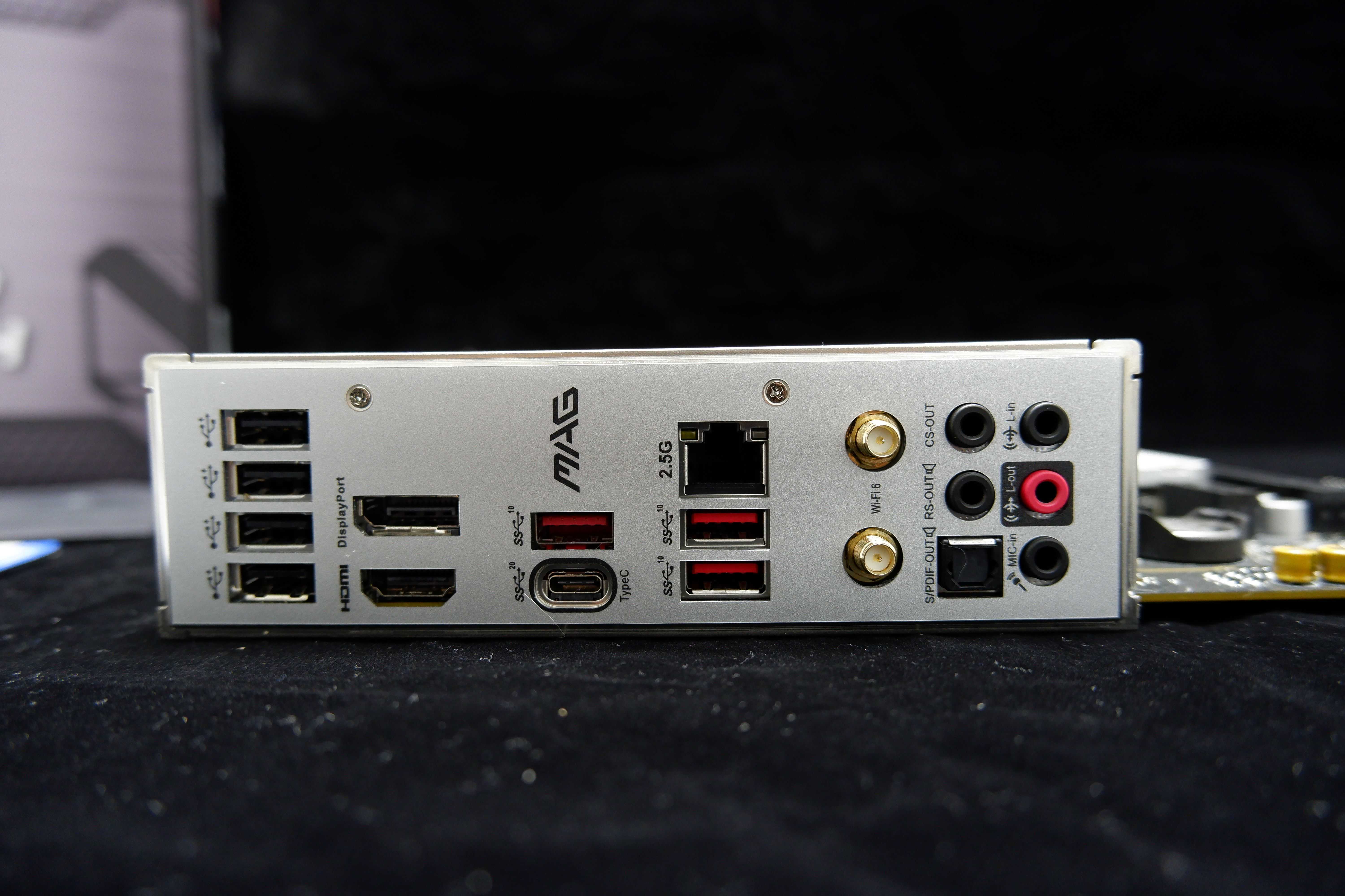 整个主板的接口部分非常丰富,有4个接口,以及板载输出的一个HDMI和一个DP接口,接口上,Gen1TypeA的红色接口为10Gbps,TypeC口为Gen2,支持20Gbps。板载2.5G高速网口与AX200WiFi6无线网卡,板载声卡支持7.1声道输出。微星B660M迫击炮WiFiDDR4提供的声卡是来自小螃蟹Realtek的ALC1200,对我来说,完全够用了。
