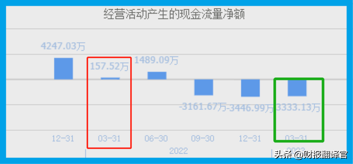 所以综上所述,在2023年第一季度,虽然该企业经营活动产生的现金净额虽然为负数,但是因为钱都花在了购买原材料上,所以这家公司的生产经营是没有问题的。