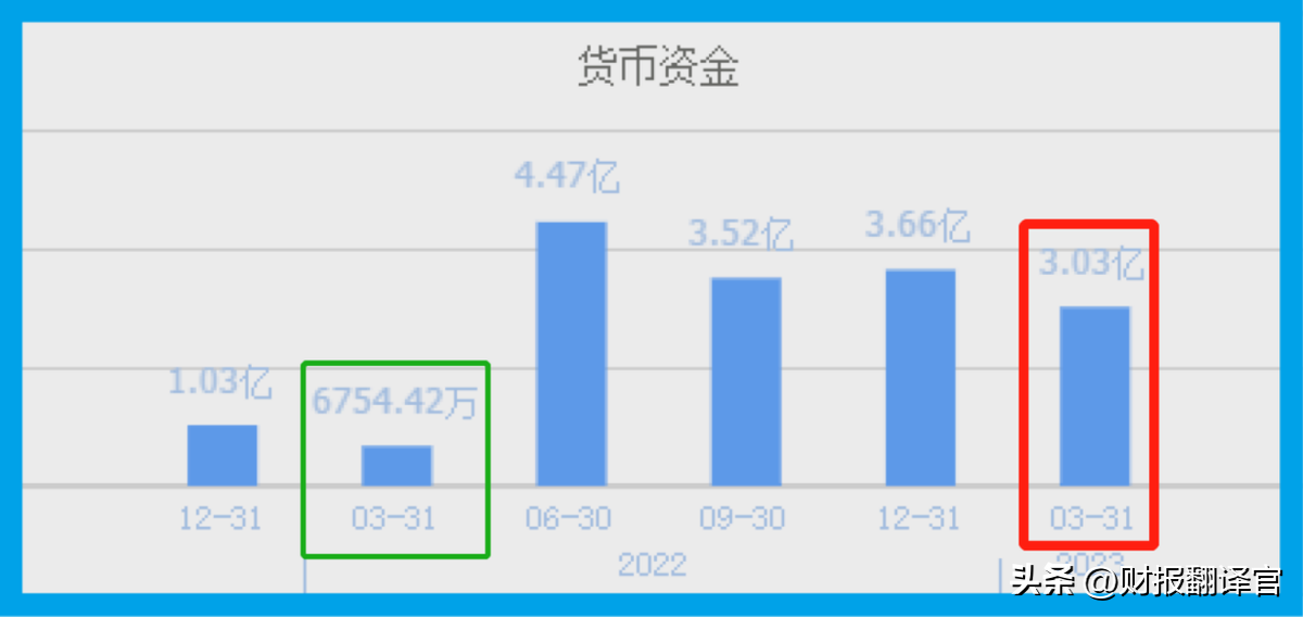 2022年第一季度,该企业的货币资金只有6,754万元。到了2023年第一季度,这家公司的货币资金就达到了3.03亿元,同比大幅增长了349%。