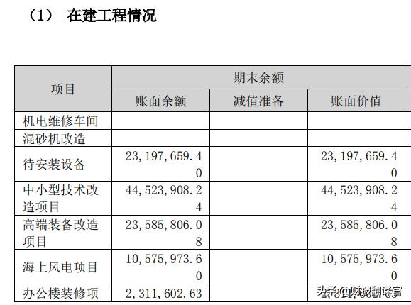 而在这家企业2022年的财报中翻译官了解到,该公司在建工程项目主要包括中小型技术改造项目、高端装备改造项目以及海上风电项目。