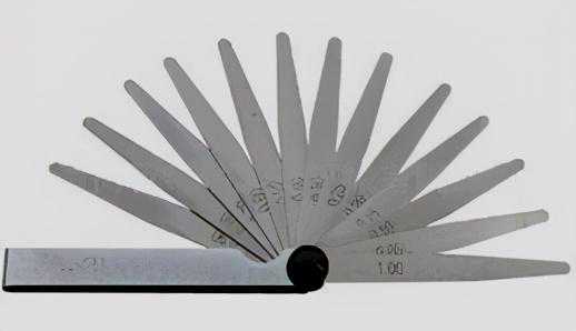 塞尺由一组具有不同厚度级差的薄钢片组成的量规(见图)。塞尺用于测量产品间隙尺寸。塞尺一般用不锈钢制造,最薄的为0.02毫米,最厚的为3毫米。自0.02~0.1毫米间,各钢片厚度级差为0.01毫米;自0.1~1毫米间,各钢片的厚度级差一般为0.05毫米;自1毫米以上,钢片的厚度级差为1毫米。除了公制以外,也有英制的塞尺。图5为塞尺。