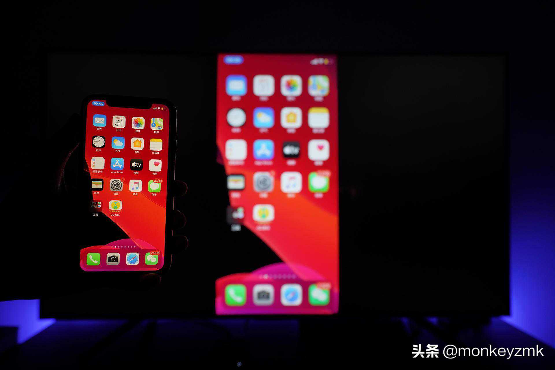 只需将手机与AppleTV连接到一个WiFi网络,点开屏幕镜像即可将手机屏幕同步到电视上。此功能对于办公文档演示非常方便。