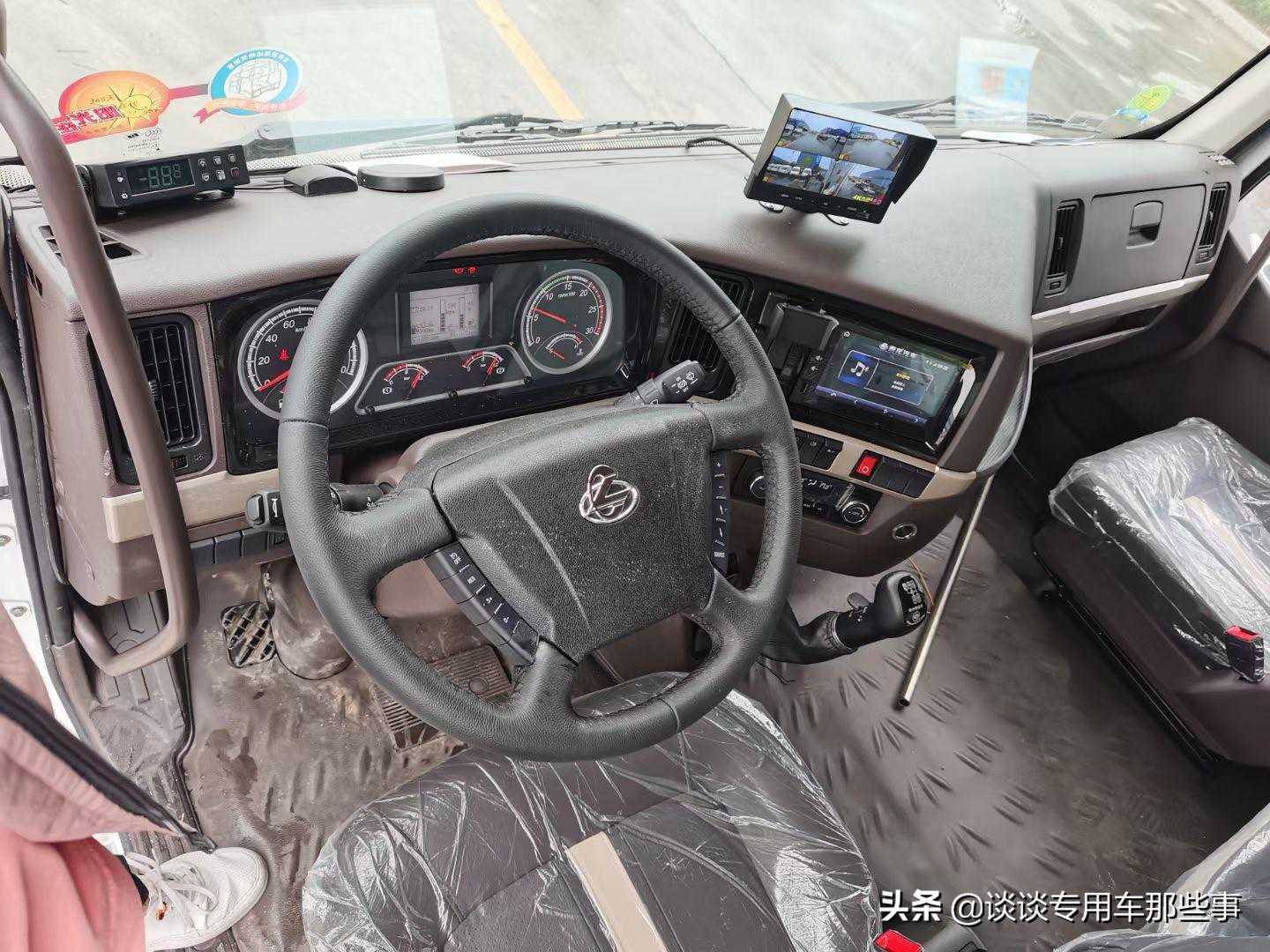 底盘配置:YCS60245-60A发动机,5700轴距,H53S驾驶室,8JS95E-C,3.6T前桥,后桥9T/4.364,板簧11/12+9,264(6)加强大梁,350L铝合金油箱,275/80轮胎,机械全浮式驾驶室悬置,液压机械翻转,夹层玻璃,电动玻璃升降,气囊减震司机座椅,定速巡航,ABS,行驶记录仪,自动空调。