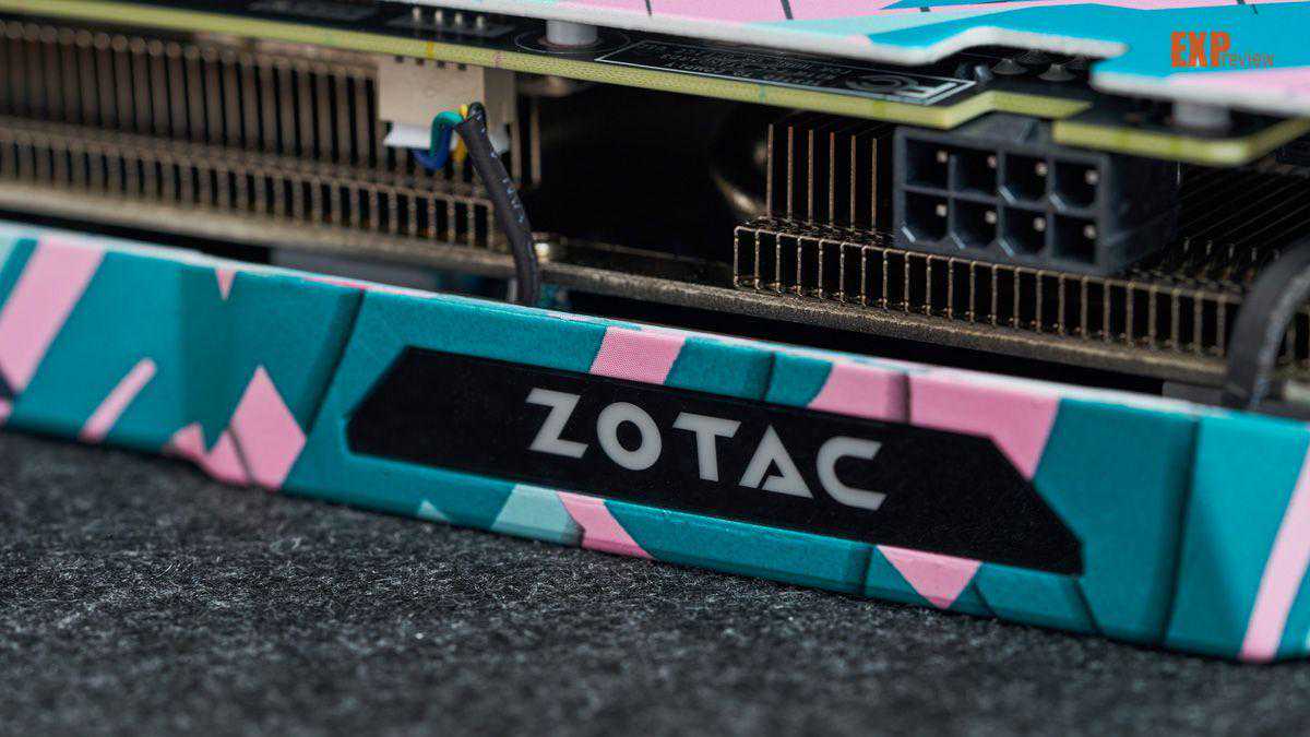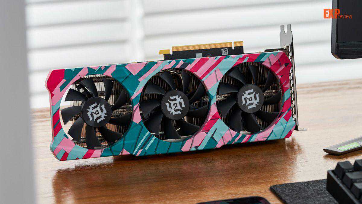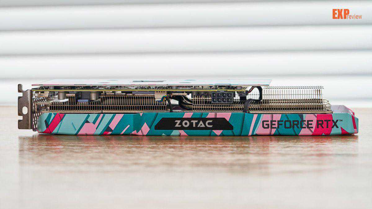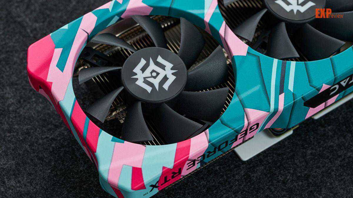 索泰创造性的把水披覆工艺引入到显卡外观造型上,RTX3050X-GAMINGOC外观因为采用了撞色设计非常的显眼,很能展示年轻一代用户的个性,相比传统的沉稳风格暗色调的设计而言也更容易搭建有趣的桌面风格,包装盒也和显卡一样采用了年轻时尚的多彩色调。