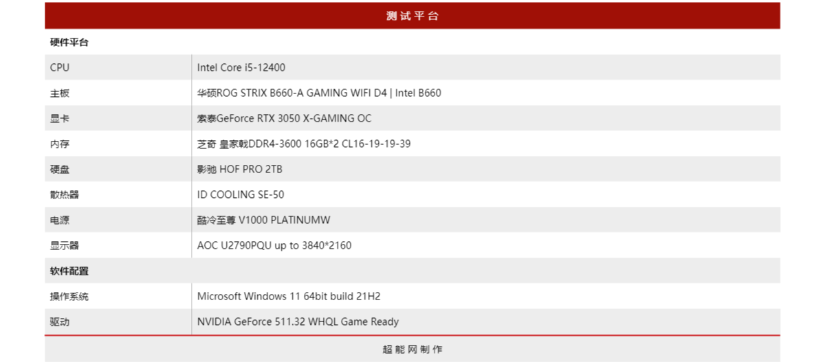 测试平台使用IntelCorei5-12400处理器,主板是华硕ROGSTRIXB660-AGAMINGWIFID4,使用芝奇皇家戟DDR4-360016GB*2CL16双通道套装。