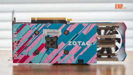 显卡的尺寸为279*117*43mm,是一款标准的双槽卡,对机箱的兼容性非常好,显卡的背面还配有金属背板,同样为撞色设计,保证了整体的一致性和美观,而且你会发现散热器其实是要比显卡PCB长不少的,最后一把风扇基本直接镂空,可以使的最右侧风扇的风流直接贯穿散热器,让热量尽可能地散发到机箱内部并被机箱风扇带走,有利于加强显卡的散热。