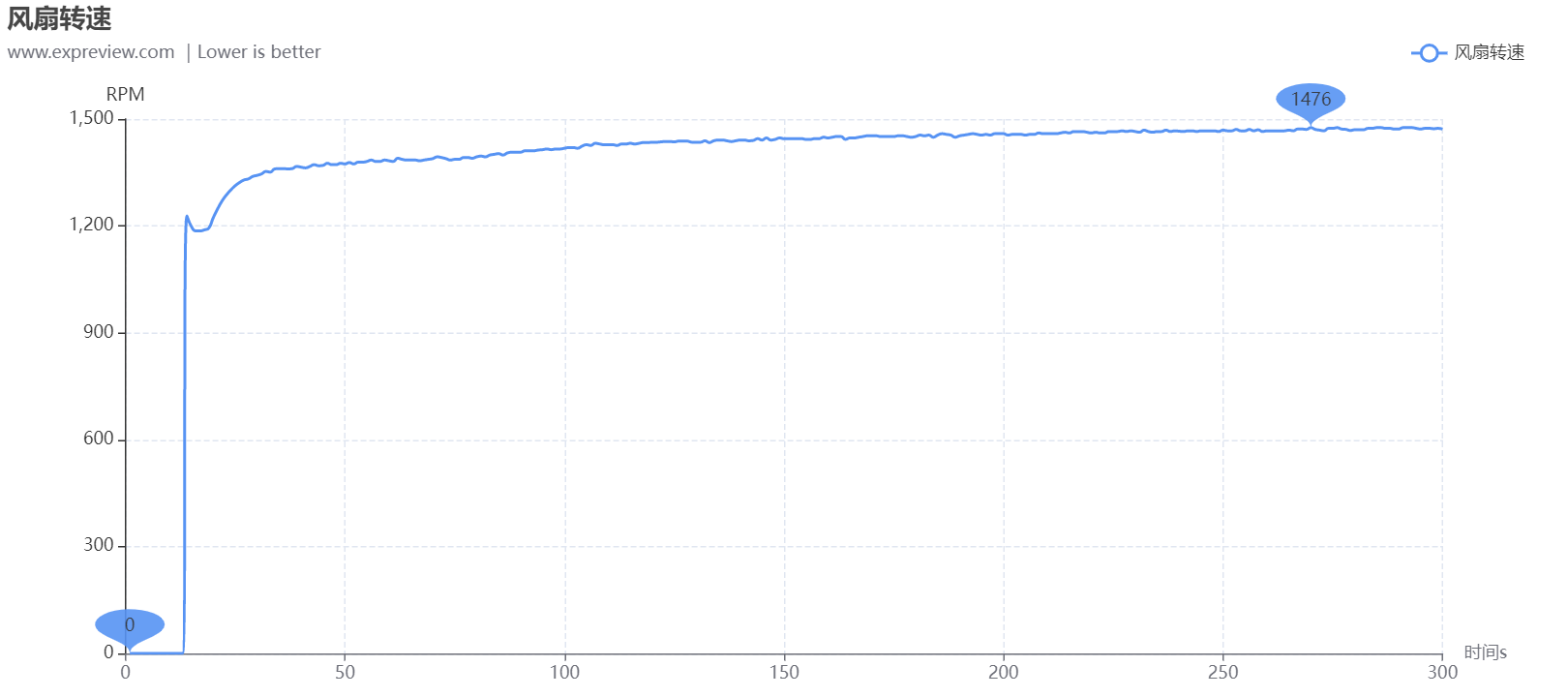 温度与噪音测试在温度测试直接裸机,测试环境温度约为24℃,待机温度是开机以后记录5分钟,满载温度则是在运行3DMarkTimeSpyExtreme压力测试中取得,数据通过GPU-Z的LogtoFile功能记录,以下为温度测试曲线: