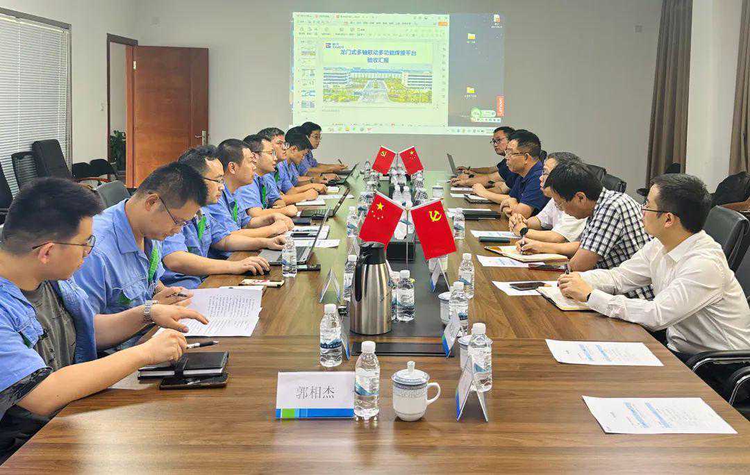 参观结束后,项目验收汇报会议在一机床公司五号会议室召开,一机床公司总经理张伟、泰尔创始人邰正彪、上海交通大学材料学院副院长李铸国、一机床公司副总经理储亮、一机床公司总工程师龚宏伟、泰尔智慧激光研究中心总监彭彪、一机床公司PMC副总经理兼总师办主任郭宝超、上海交通大学焊接与激光制造研究院金鑫、泰尔智慧激光焊接事业部总监黄立进等人出席本次会议。项目经理黄立进从焊接平台概述、整体安装进度、整体技术指标、问题清单及解决情况等几个方面对龙门式多轴联动多功能焊接平台项目做总结汇报。