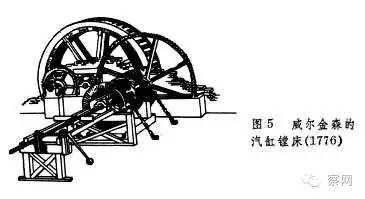 对于这个难题,威尔金森于1774年发明的镗床起了很大的作用。这种镗床利用水轮使材料圆筒旋转,并使其对准中心固定的刀具推进,由于刀具与材料之间有相对运动,材料就被镗出精确度很高的圆柱形孔洞。当时、用镗床做出直径为72英寸的汽缸,误差不超过六便士硬币的厚度。用现代技术衡量,这是个很大的误差,但在当时的条件下,能达到这个水平,已经是很不简单了。
