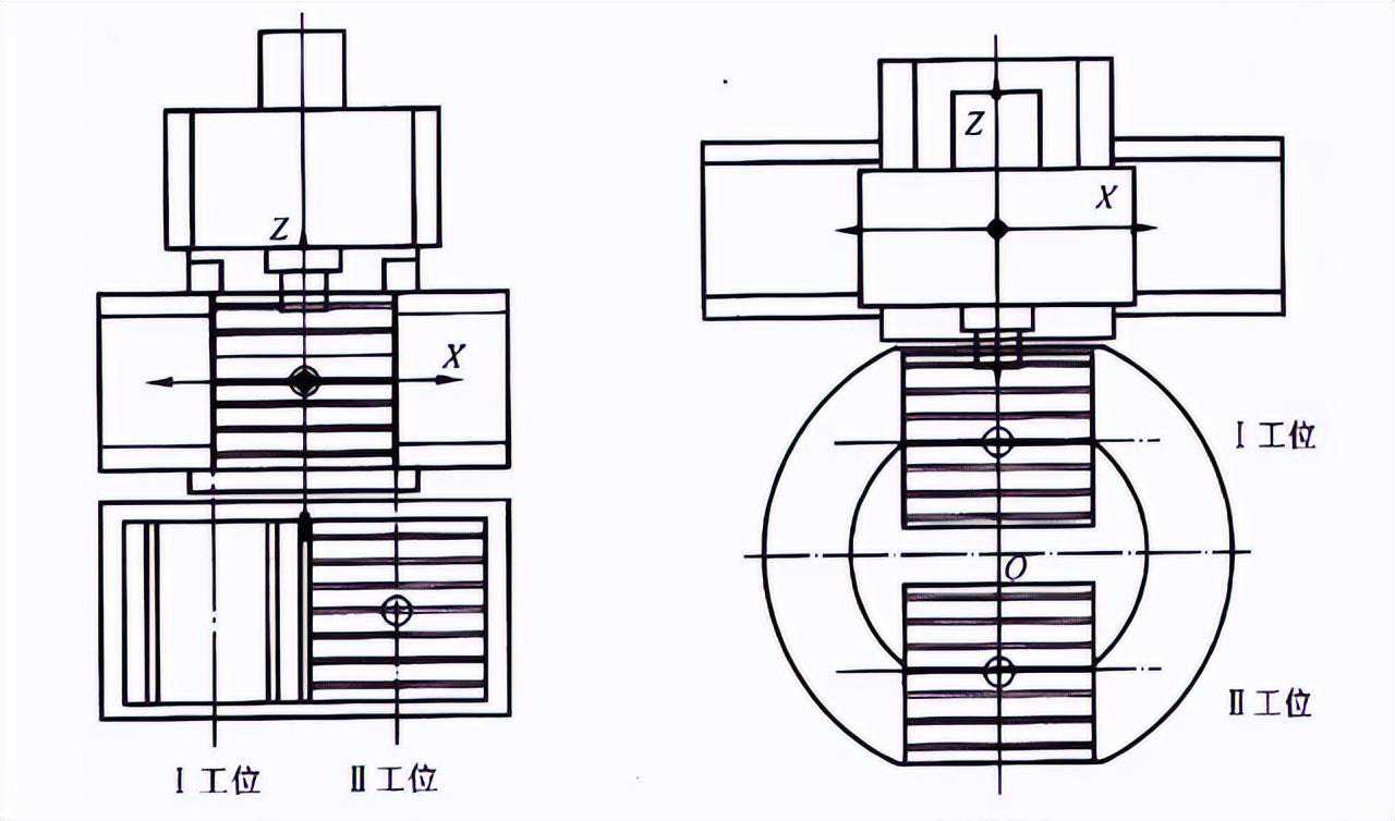 (1)卧式加工中心卧式加工中心通常采用移动式立柱,工作台不升降,T形床身。T形床身可以做成一体,这样剐度和精度保持性能比较好,当然其铸造和加工工艺性能差些。分离式T形床身铸造和加工工艺性能都大大改善,但连接部位要用定位键和专用定位销定位,并用大螺栓紧固以保证刚度和精度。