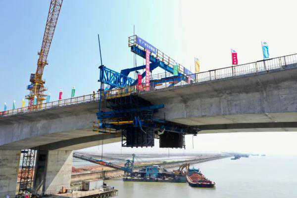 本次主桥合龙的万顷沙跨海特大桥全长1774米,与深中通道对接,为南中高速项目三大控制性工程之一。