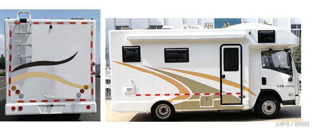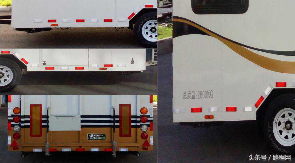可在车身喷涂或粘贴宣传文字,标识;车身侧围选装遮阳篷时,对应整车宽度为2470mm;侧防护和后防护结构均为裙板式,后防护离地高度为470mm,轴距/前悬/后悬对应关系;1140/3360/1495,1110/3308/1577,该车带OBD。ABS控制器型号/厂家:ABS8/克诺尔制动设备(上海)有限公司,VIEABS-Ⅱ/浙江万安科技股份有限公司,该车配备厨具、卧具、卫生设施等旅居生活和娱乐设施等专用装置,满足旅游出行之需。。