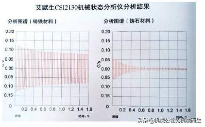 机床机台在用矿物铸件制作的过程中,水管、油管、气管、穿线管、管接头、接地电线等配件可以直接预埋其中。各种配件安装孔位(例如线轨、丝杠支撑单元、钣金、拖链、光栅尺等)可以直接用304不锈钢镶嵌件与矿物铸件浇铸在一起。浇铸完成后的毛坯根据用户图纸要求对线轨安装面、丝杠支撑单元安装面等重要结合面进行高精密加工(用进口数控龙门导轨磨床加工),其余非重要安装面则无需加工,由灰铸铁精加工模具保证矿物铸件大面的平直度及外形尺寸。◆吸震性随着机床主轴的旋转速度越来越高,各进给轴的加速度越来越大,机床的动态性能就越显得重要。快速定位、刀具快速置换、高速进给对机床结构部件不断地产生共振和动态激励。除了结构部件的尺寸设计,部件的挠曲性、质量分布、动态刚性等性能很大程度上受到材料阻尼特性的影响。矿物铸件为这些问题提供了一个良好的解决方案。因为它比传统铸铁的吸振性能好10倍,能大幅度降低振幅和固有频率。特别是对大幅度的震动,矿物铸件具有极强的吸震能力。马达的震动以及在搬运途中叉车对矿物铸件的震动影响极小,可以很好地保证机器的精度。再诸如机械切削加工中,可以带来更高的精度、更好的表面质量、更长的刀具使用寿命。