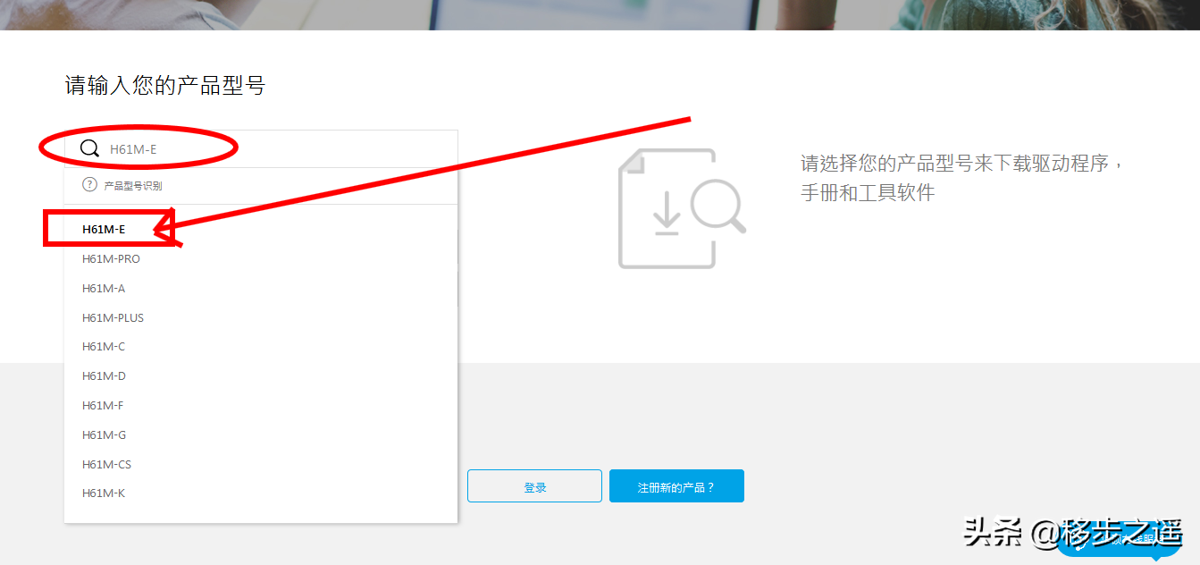 5、输入我们刚刚记录的主板型号H61M-E,在弹出的窗口选择我们电脑的主板型号(如图所示):