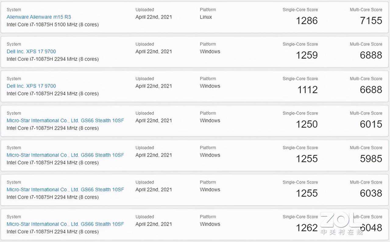 这一点我们可以参考十代酷睿i7-10875H处理器的单核/多核性能表现,见下图:
