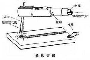 所有的金属材料几乎都可以用电弧切割。电弧切割分为碳弧切割、气刨和空心焊条电弧切割3种。①碳弧切割:用钳式割炬夹持圆柱形、扁形或矩形的碳棒作为电极之一,另一电极为工件。压缩空气从割炬喷气孔喷出,并沿碳棒侧面或四周喷向电弧在工件上的燃着点,吹除熔化金属和熔渣,形成切口。碳弧切割可用于切除焊缝缺陷、开坡口、切除铸件冒口、飞边、毛刺和缺陷,以及废品废料的解体等。②气刨:用碳弧切割的方法在工件表面上开槽。③空心焊条电弧切割:原理和用途与碳弧切割相似。电极用特制的空心焊条,焊条的药皮起稳定电弧和增大熔化金属流动性的作用。压缩空气从焊条中心孔喷出,吹除被电弧熔化的金属和熔渣,形成切口。