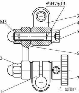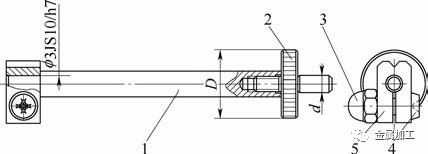 (2)顶尖、附件固定杆通常都是成对使用,外圆尺寸要选配成对与底座孔2个φ6mm孔的配合间隙≤0.005mm。