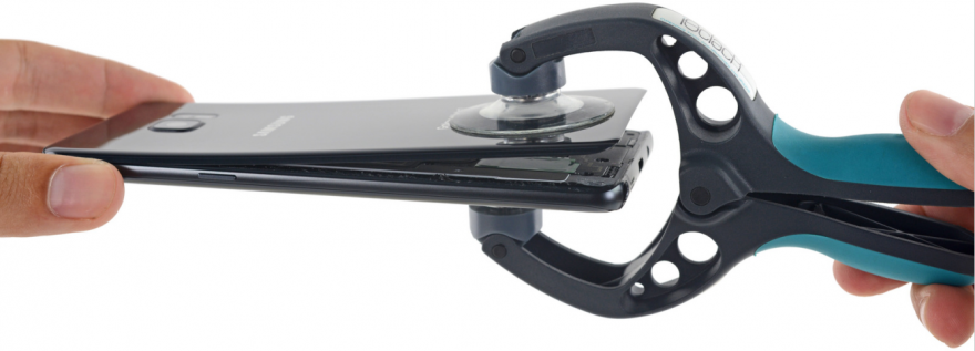 对了,如果拆解手机是一项奥运会运动的话,那么我们肯定能每次都拿金牌,首先我们加热一下背部的玻璃,使其胶水能够软化,然后再使用吸盘和拨片将玻璃与背壳分离出来。