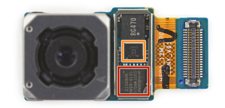 橙色:光学防抖陀螺仪,应该是与S7Edge上一样的意法半导体K2G2IS陀螺仪
