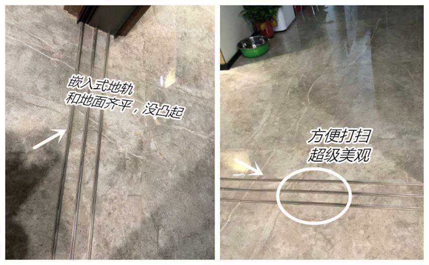 地轨推拉门安装好后,地面势必存在门槛,来回行走一个不注意,会被绊倒;而且时间久了,缝隙灰尘很难打理。
