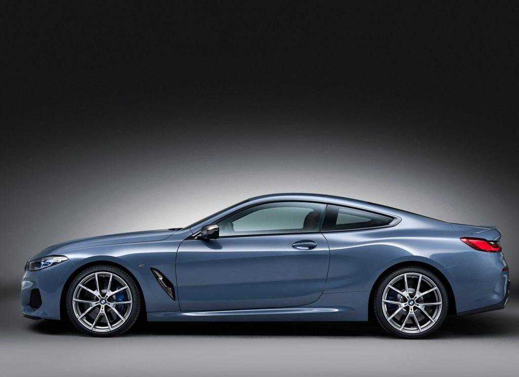 GT车型的腰线一直引人注目。新一代8系侧面腰线凌厉,能看到一些6系的影子,微微突出的轮眉凸显其运动本质;车顶线条勾勒出溜背的造型,在抵达车尾的时候微微翘起,十分优雅。车身尺寸方面,长宽高尺寸分别为4843/1902/1341mm,轴距为2822mm。
