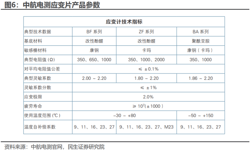 应变片的核心性能指标是灵敏系数和疲劳寿命,国内外生产的应变片主要技术差异体现于此。一般而言,国内的应变片价格,根据中航电测招股说明书披露的数据计算,大约在几元左右,而海外进口应变片的价格可达百元以上。