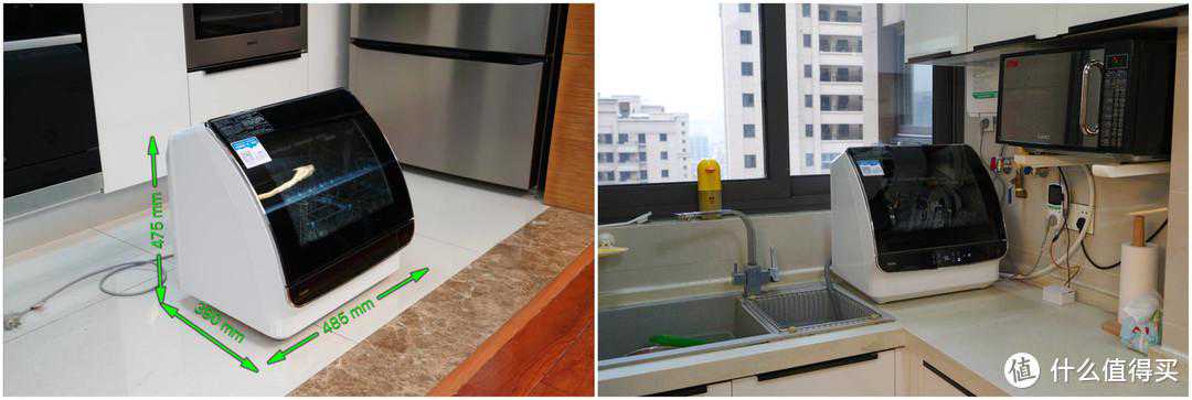 ▲这台洗碗机体积比较小巧,放置在厨房台面上节省空间。是我目前用过占地面积较小的洗碗机了。