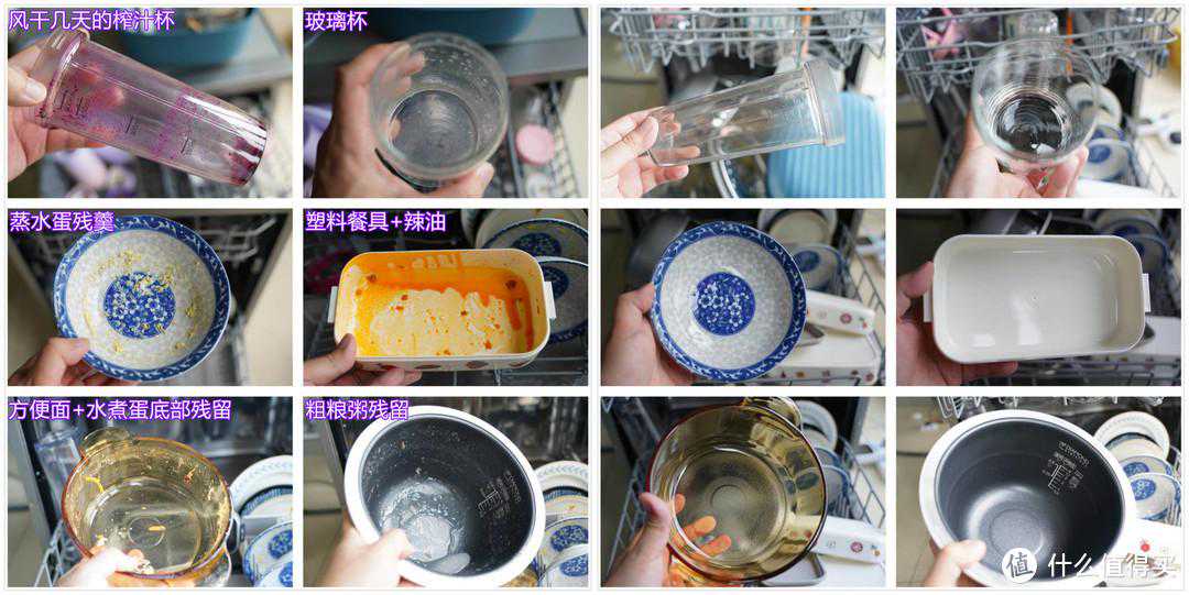 ▲洗碗机共6大主洗程序+3种增值程序。上下三层喷淋,配合BLDC电机最大水压达32000Pa。参照国标《GB/T20290-2016家用电动洗碗机性能测试方法》第6章节洗涤性能中6.2污染物要求来制作了6大类污染物来测试这款洗碗机的洗涤性能。全部污渍用80℃烘烤1小时来增加洗涤难度。这些污渍清除的非常干净。