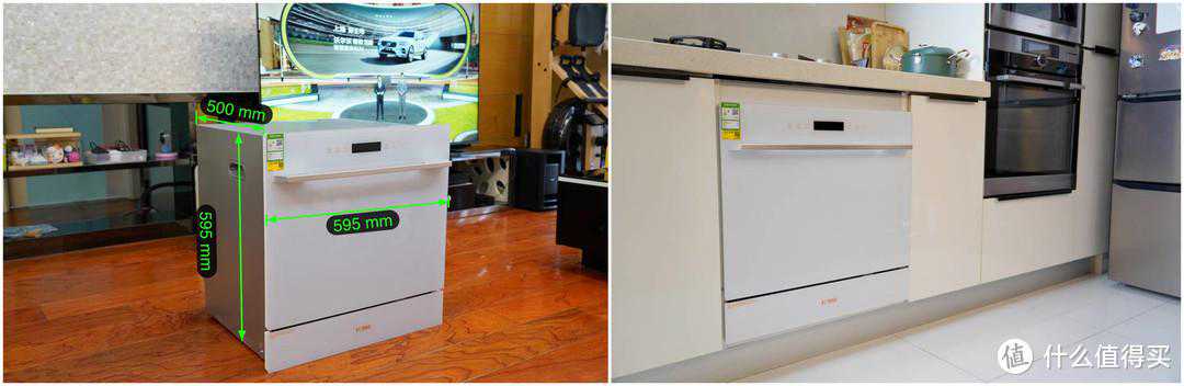▲最近有粉丝问我,台面高度只有770mm,怎么装的下775mm的洗碗机?答案肯定装不下!但海尔晶彩系列128CS13套洗碗机就没问题。