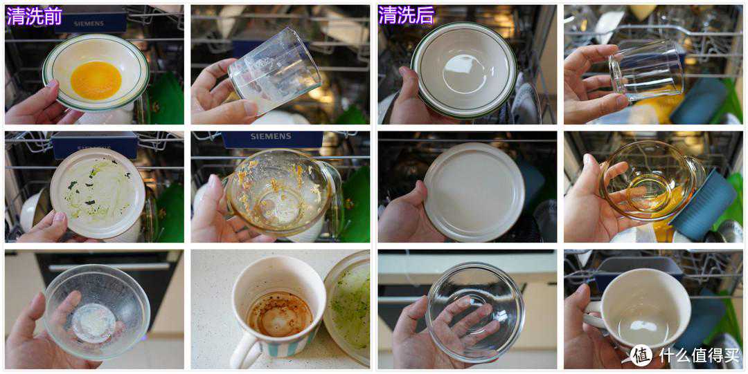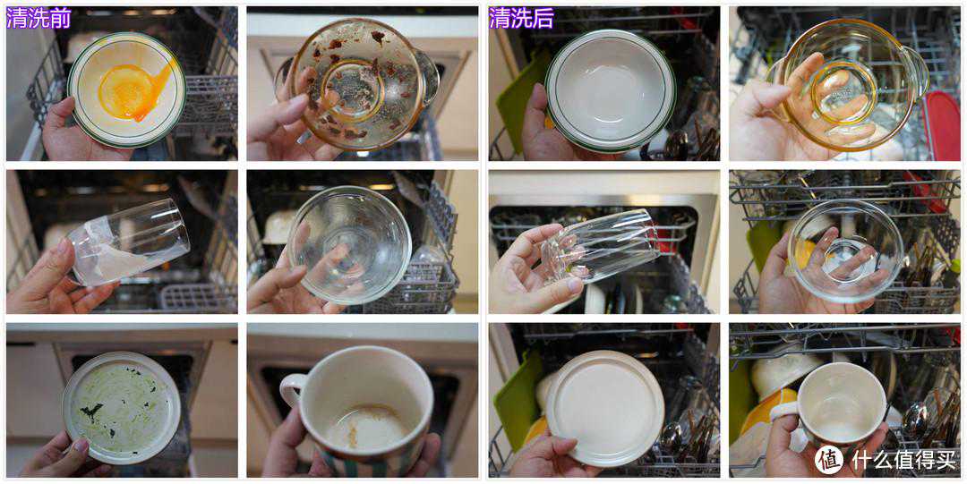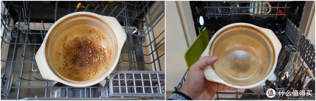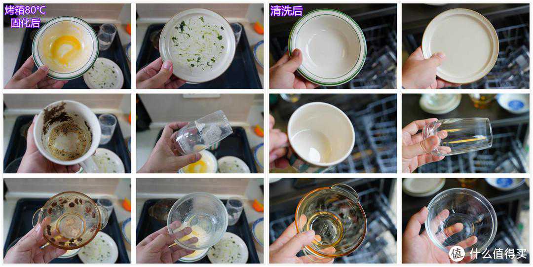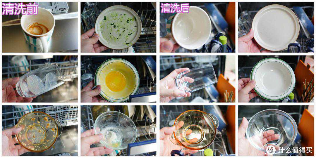 ▲六大类污渍足以模拟日常能接触到的所有污渍。其中,洗碗机梦魇--蛋白残留尤其难以清理。因为蛋白质遇高温会变性,所以蛋白会越来越顽固难以清理。这边的2个餐具上都含有蛋白。洗完后检查,两个餐具里的蛋白残留都洗的干干净净。这应该是高水压+洗涤剂共同作用的结果,缺一不可。