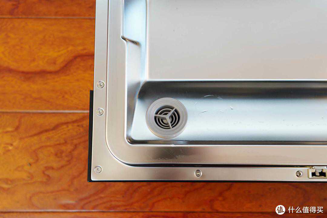 ▲内胆采用304全不锈钢内胆。相比塑料内胆好处是接缝平整,不易藏污纳垢。塑料内胆容易残留油污,而不锈钢则无这个问题。另外不锈钢相比塑料导热性优异,这样烘干能力就比塑料内胆洗碗机强。