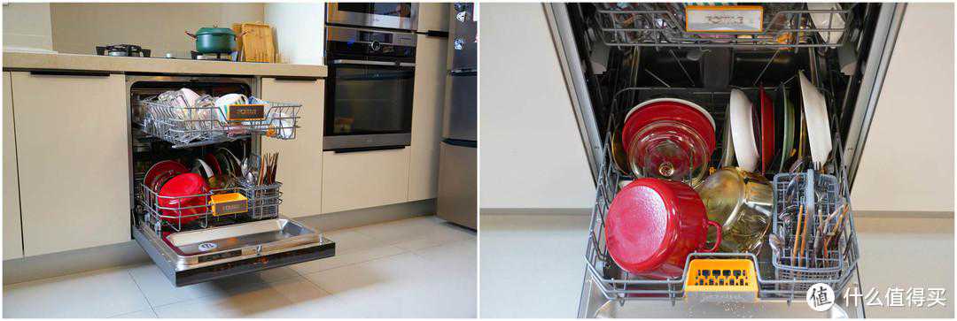 ▲它是无法安装嵌入式洗碗机,又想后期使用洗碗机家庭的最终解决方案。因为容量大,实用!三口之家日常产生的餐具毫无压力全部能放入它的中式碗篮中。