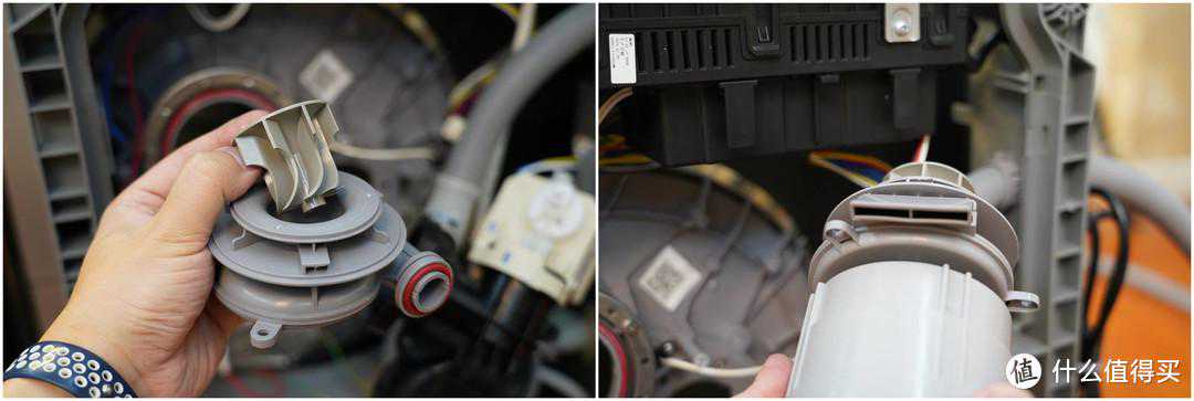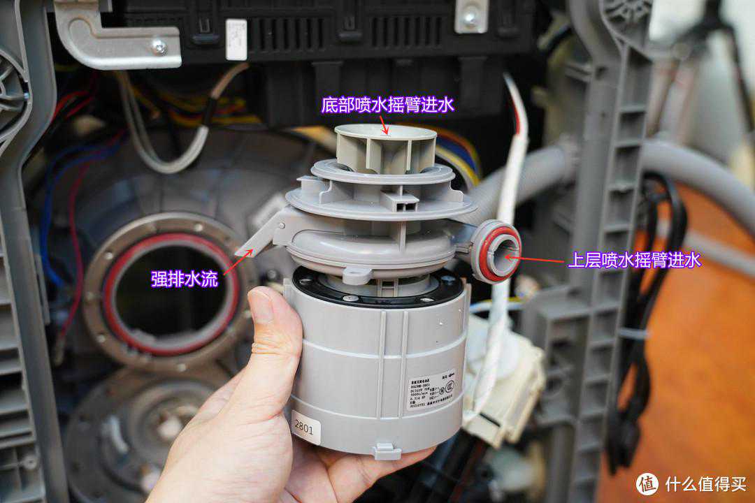 ▲这台洗碗机主水泵是70W直流无刷变频电机。它共发挥三大作用: