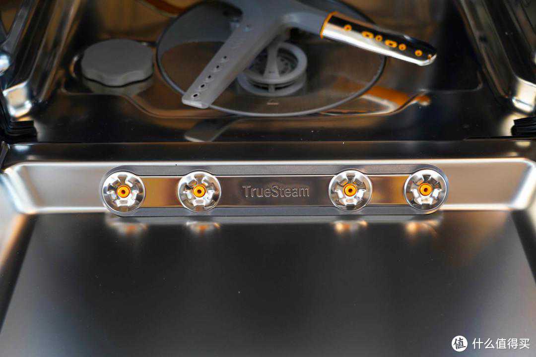 ▲在舱门底部装备有4个蒸汽喷口。它通过蒸汽发生器,在清洗过程中喷射100℃高温蒸汽,通过蒸汽分子穿透污渍进行分解清理;同时达到高温除菌消毒目的。除菌率可达99.99%。高温蒸汽即可以软化重油污,又可以深层达到除菌目的。