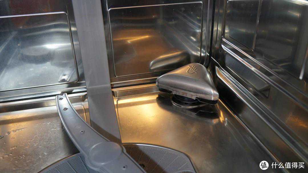 ▲在洗碗机腔门内侧有一个排气口,一进一排才能做到高效。但Hop9正面并未有可见排气孔。可能为了整体美观性考虑,出气口隐藏于门板内。
