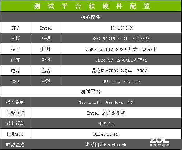 首先介绍一下测试平台,为了保证此次评测能够发挥耕升GeForceRTX3080炫光10G显卡的最佳性能,主板和CPU采用了目前桌面旗舰级配置,具体如下。