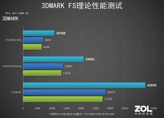 耕升GeForceRTX3080炫光10G显卡,同比于RTX2080。FireStrike提升51.8%、FireStrikeExtreme提升56.1%、FireStrikeUltra提升63.4%。