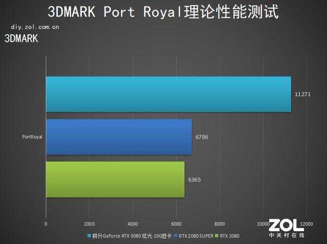 在PortRoyal光追测试中,耕升GeForceRTX3080炫光10G显卡相比RTX2080的分数提升了77%。