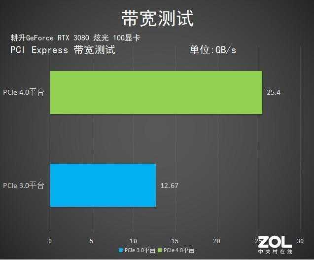 测试条件:通过将显卡安装在X570主板与Z490主板来对耕升GeForceRTX3080炫光10G显卡进行3DMark中的PCIExpress带宽测试来进行测试,测试成绩如下。