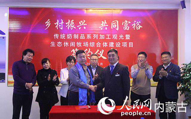 人民网呼和浩特(刘艺琳)1月4日,内蒙古通辽市扎鲁特旗传统奶制品系列加工观光暨生态休闲牧场综合体建设项目签约仪式举行。签约仪式上,玛拉沁艾力农牧业发展有限责任公司与黑龙江巴达荣贵牧业有限公司、北京中经创健生物科技有限公司就生态休闲牧场建设、有机肥厂及有机种植基地、传统奶制品、乳清饮料厂等项目签署了合作协议。