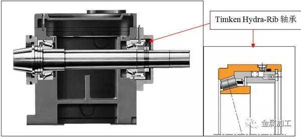 此外,在一些内圈挡边线速度大于30米/秒的高速应用中,某些特殊设计的圆锥滚子轴承也能满足要求,如TSMA轴承或Hydra-Rib液力浮动挡边轴承(见图3)。TSMA轴承的挡边有多个轴向方向的润滑油孔,可采用循环油润滑或油雾润滑,离心力可将油分布到滚子与挡边接触区,从而能更充分地润滑轴承,提高轴承转速。而Hydra-Rib液力浮动挡边轴承是专为优化主轴系统的预载而设计,轴承有可浮动的挡边,与滚子大端接触,不像常见的轴承有固定内圈挡边;且该浮动挡边由“压力”系统定位,这样就能保证轴承在各个工况条件下都能发挥最优异的性能,并且已经成功的在国内客户中使用。