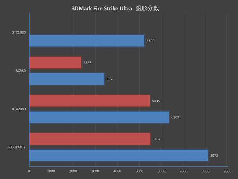 在3DMarkFireStrikeUltra测试中,RTX2080Ti图形分数为5462分,最高温度45度。