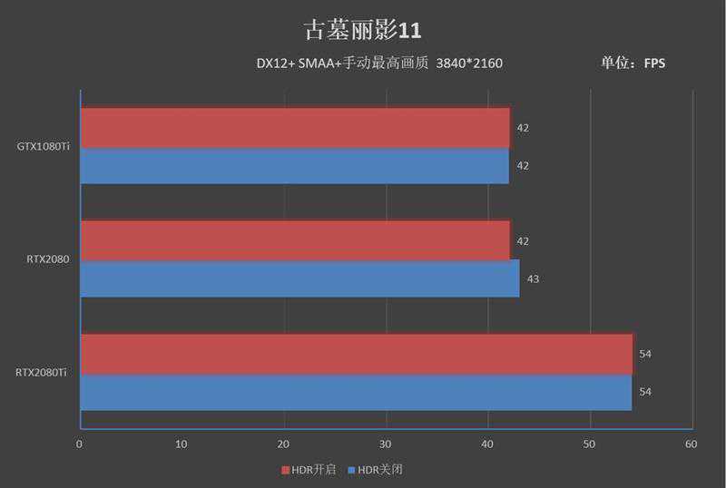 从以上的测试可知,对于RTX2080/Ti而言,开启HDR特效,性能损失非常之微小,GTX1080Ti也仅仅是在《生化危机7》中有13%的帧率损失,其他情况下开启HDR之后,都没有太大影响。