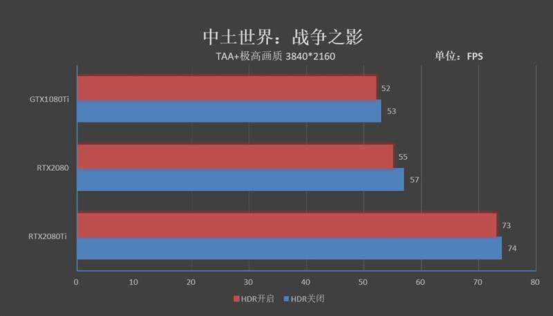 在《中土世界:战争之影》测试中,打开HDR之后,三款显卡游戏的帧率都只损失2FPS。