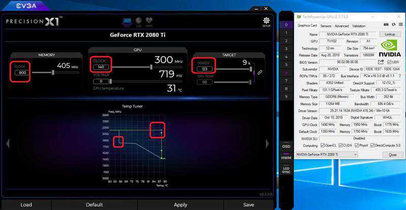 下面的“TempTuner”就是的核心要素,玩家可以自由调节温度与频率之间的拐点。例如RTX2080Ti默认会在63度开始降频,我们在此将所有的降频温度都调整到了88度,也就是说在功耗墙之前,GPU运行频率在88度之前都会降低。